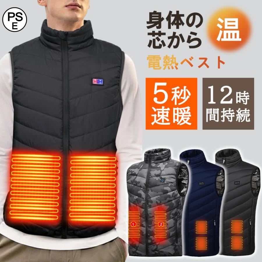 電熱ベスト 日本製ヒーター 13箇所発熱 USB式給電 3段階調整可能 洗える ワークマン ベスト 速暖 繊維ヒーター 前後独立温度設定可能 男女兼用 防寒着 新生活