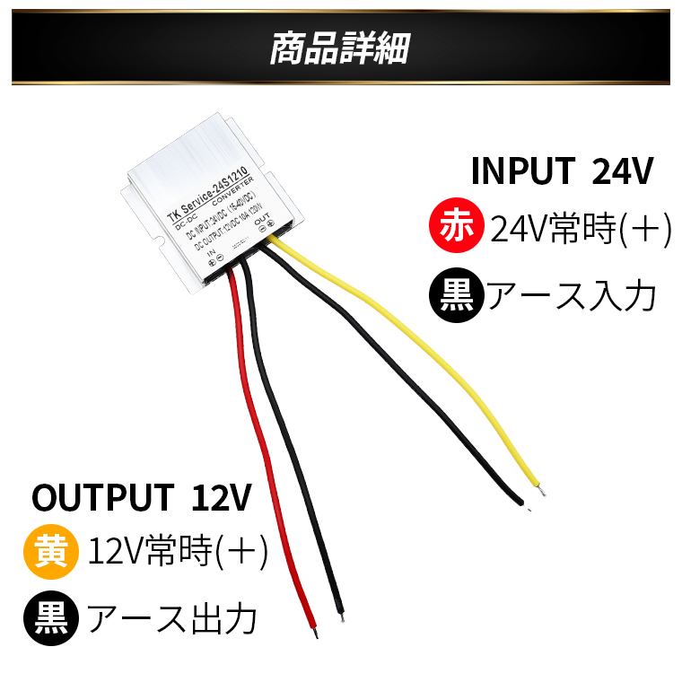 ■【製品特徴】大型車電源DC24V(15V〜40V)を電源(DC12V10A)に変換するDC-DCコンバーターです。※電圧15V〜40V以内なら12Vに変換することができます。