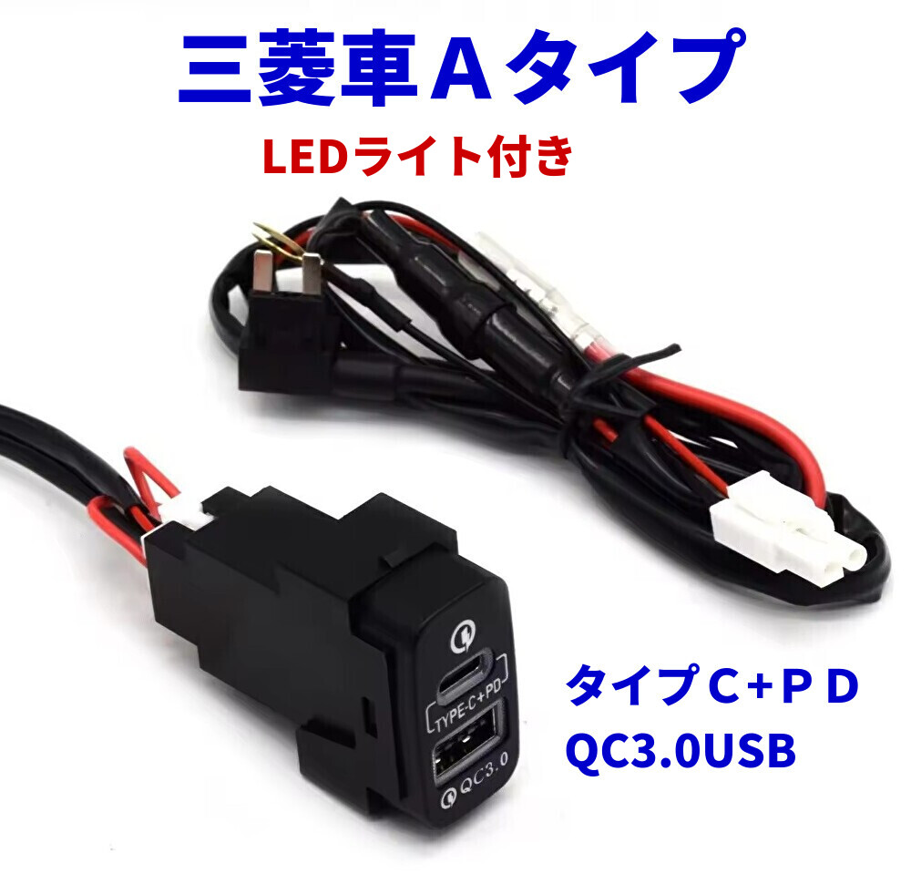 三菱車用 電源ソケット QC3.0 急速充電 USBポート PD-タイプC スマホ充電器 USB電源 スイッチホール MITUBISHI 増設キット ミツビシAタイプ(37x20mm)