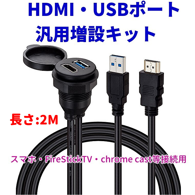 汎用 HDMI & USB 3.0 USBポート オーディオ 拡張パネル USB 3.0 ミラーリング HDMI映像入力 スイッチパネル 増設 USB電源 スイッチホール ダッシュボード 2m