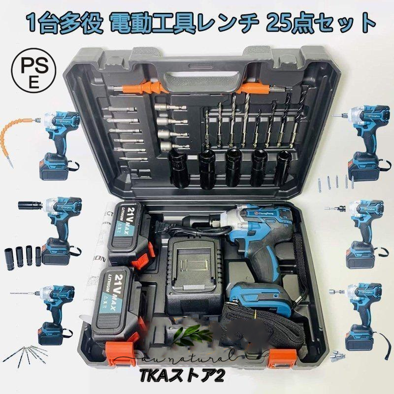 2025電動インパクトレンチ1台多役大トルク39点/25点セット電動インパクトドライバー充電式レッド付き18V電動工具