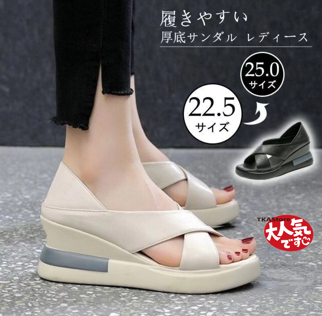 厚底サンダル レディース 軽量 ウェッジソール ミュールサンダル オープントゥ 脚長効果アウトドア おしゃれ カジュアル PU 美脚履きやすい 歩きやすい