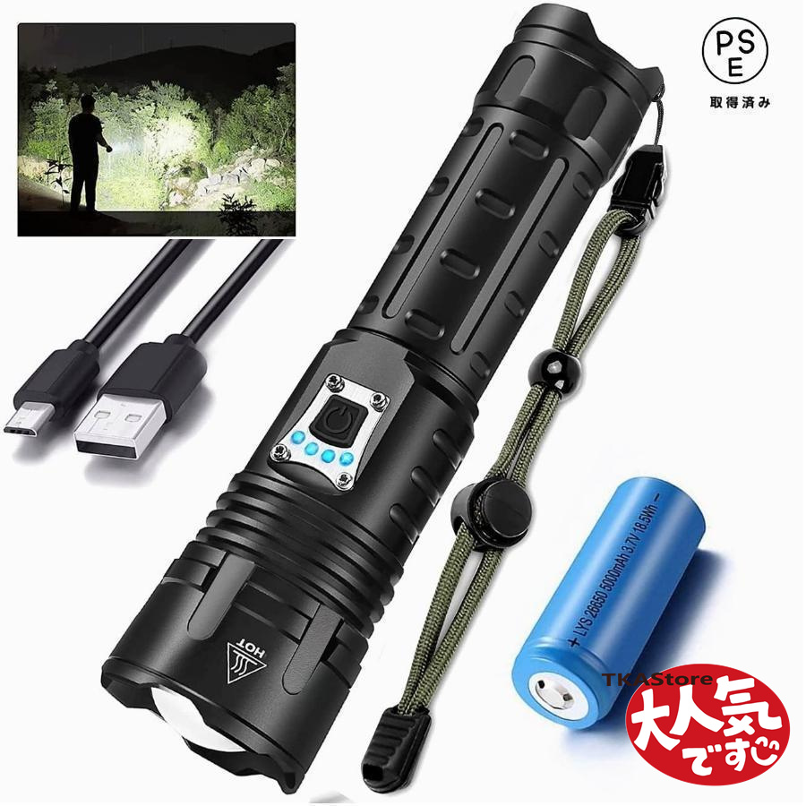 2025最新懐中電灯 led 強力 最強 490000ルーメン 超高輝度 明るい ペンライト USB充電式 かいちゅうでんとう 小型 超強力 ハンディライト 5モード