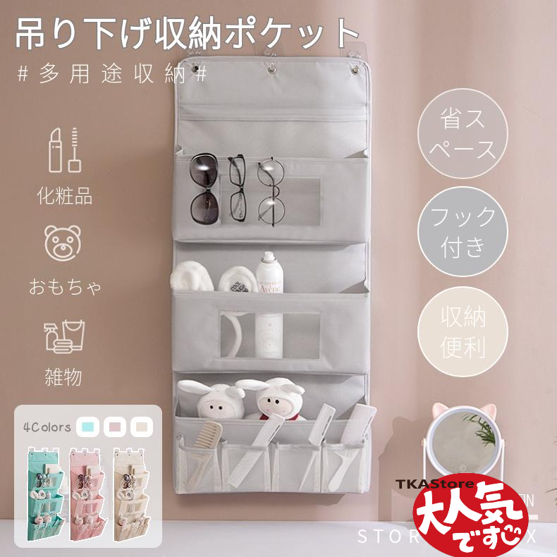 ウォールポケット 吊り下げ 壁掛け収納 フック付き 収納バッグ アクセサリー収納 大容量 収納ケース 寝室 玄関 オフィス 洗面所 小物収納 吊り下げラック