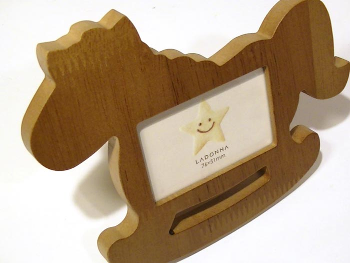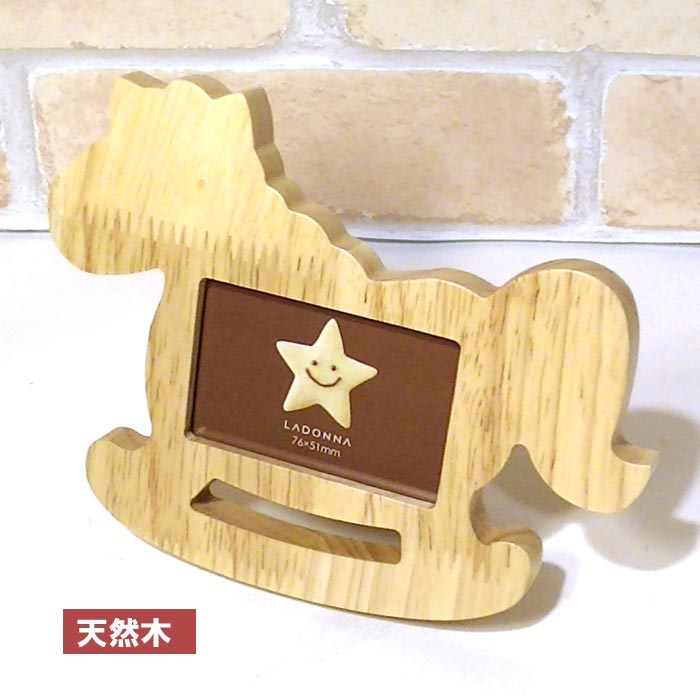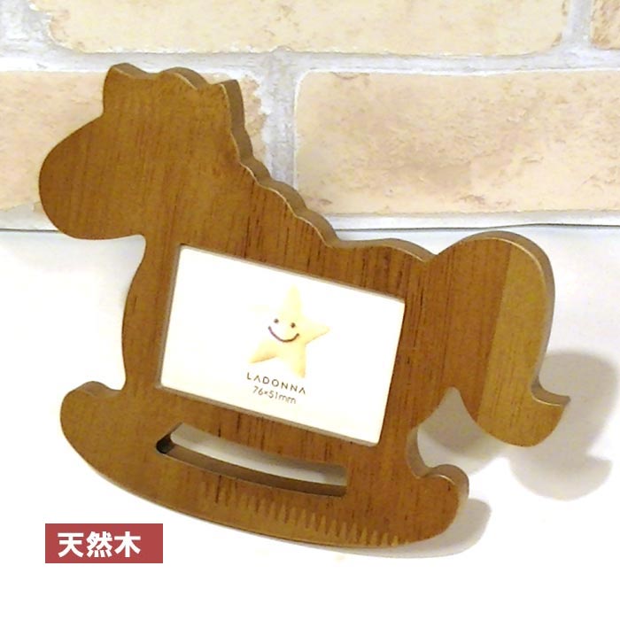 ■0812-02 写真立て ベビー 子供 フォトフレーム 木馬 もくば 天然木 木製 ミニサイズ写真用 かわいい フォトスタンド チュラル 出産祝い 誕生日祝い