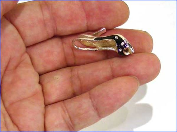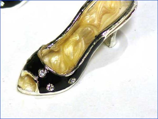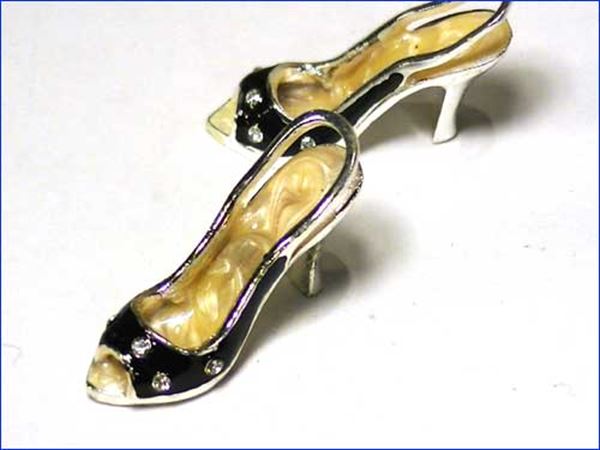 ラインストーンが付いた、ミニチュアのシューズです。