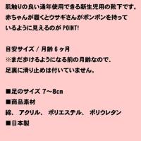ベビーソックスの商品一覧はこちらモン・スイユ ベビーの商品一覧はこちら●ギフト包装の選択はこちら 肌触りの良い通年使用できる新生児用の靴下です。 赤ちゃんが履くとウサギさんがポンポンを持っているように見えるのがPOINT!