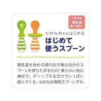離乳食に使える「はじめて使うスプーン」は柔らかい安心素材で、ディップするだけでいっぱい絡んでくる、なめなめ専用スプーンです。