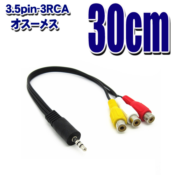 4極3.5ミニプラグ - 3RCA 30cm 4極3.5ミニプラグ(ストレートオス)-RCA(赤白黄メス) AVケーブ ル変換