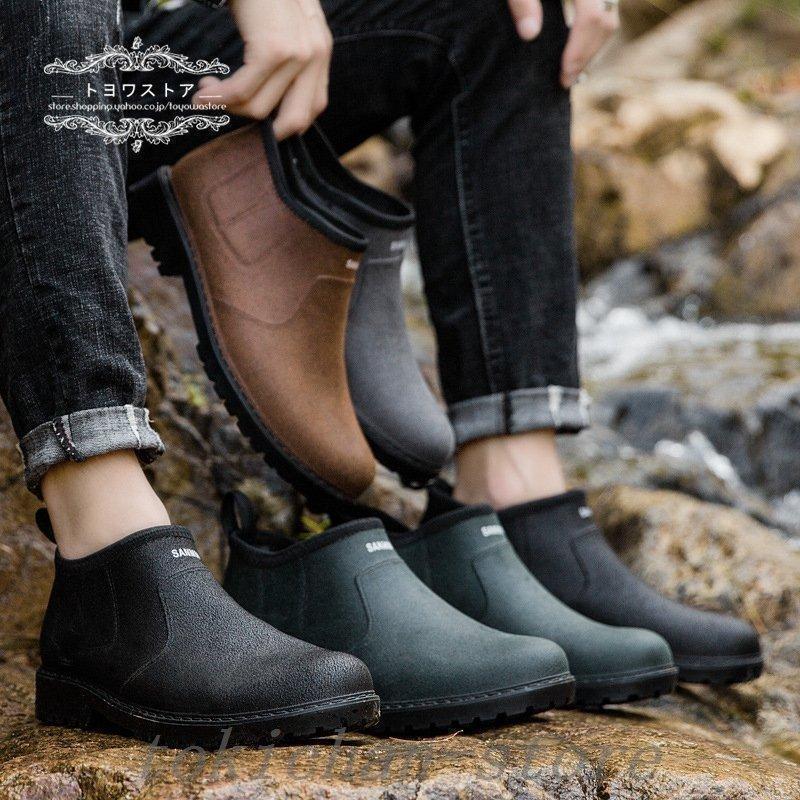 レインシューズレインブーツメンズビジネスおしゃれ防水滑り止めショートブーツローカット安い梅雨対策スリッポンハイカットワークマン
