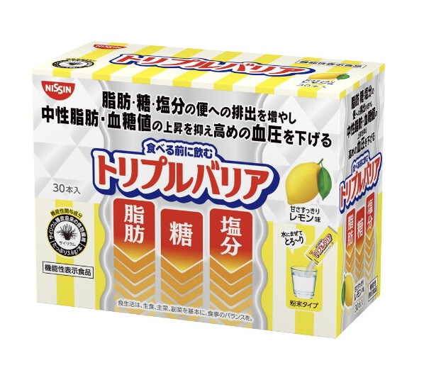 日清食品 トリプルバリア レモン味 30本入り×1箱 箱から出して発送 機能性表示食品 サイリウム 中性脂肪 血糖値 血圧 新品 賞味期限2027年5月以降