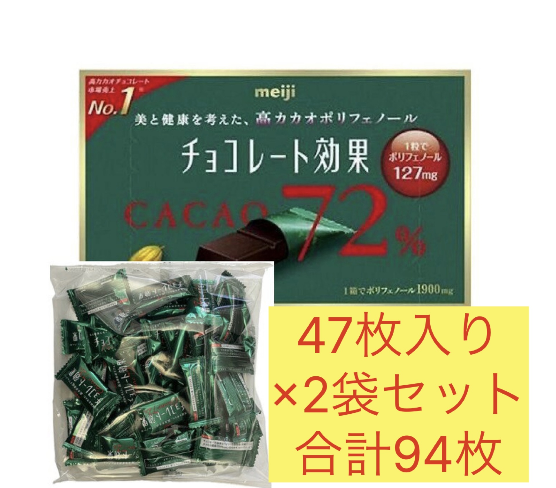 明治チョコレート効果 カカオ72% 高カカオチョコレート 47枚入り×2袋セット 合計94枚