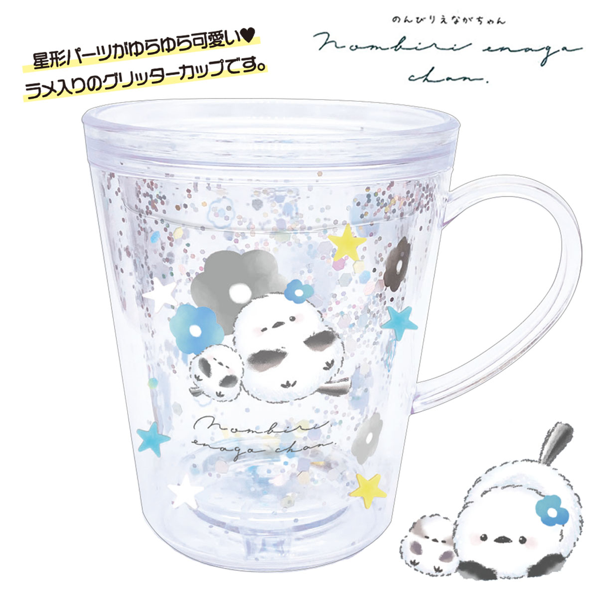 ゆらゆらグリッターカップ のんびりえながちゃん [ プラスチック プラコップ マグカップ 食器 ウォーターイン キラキラ ラメ 星型パーツ シマエナガ しまえ]
