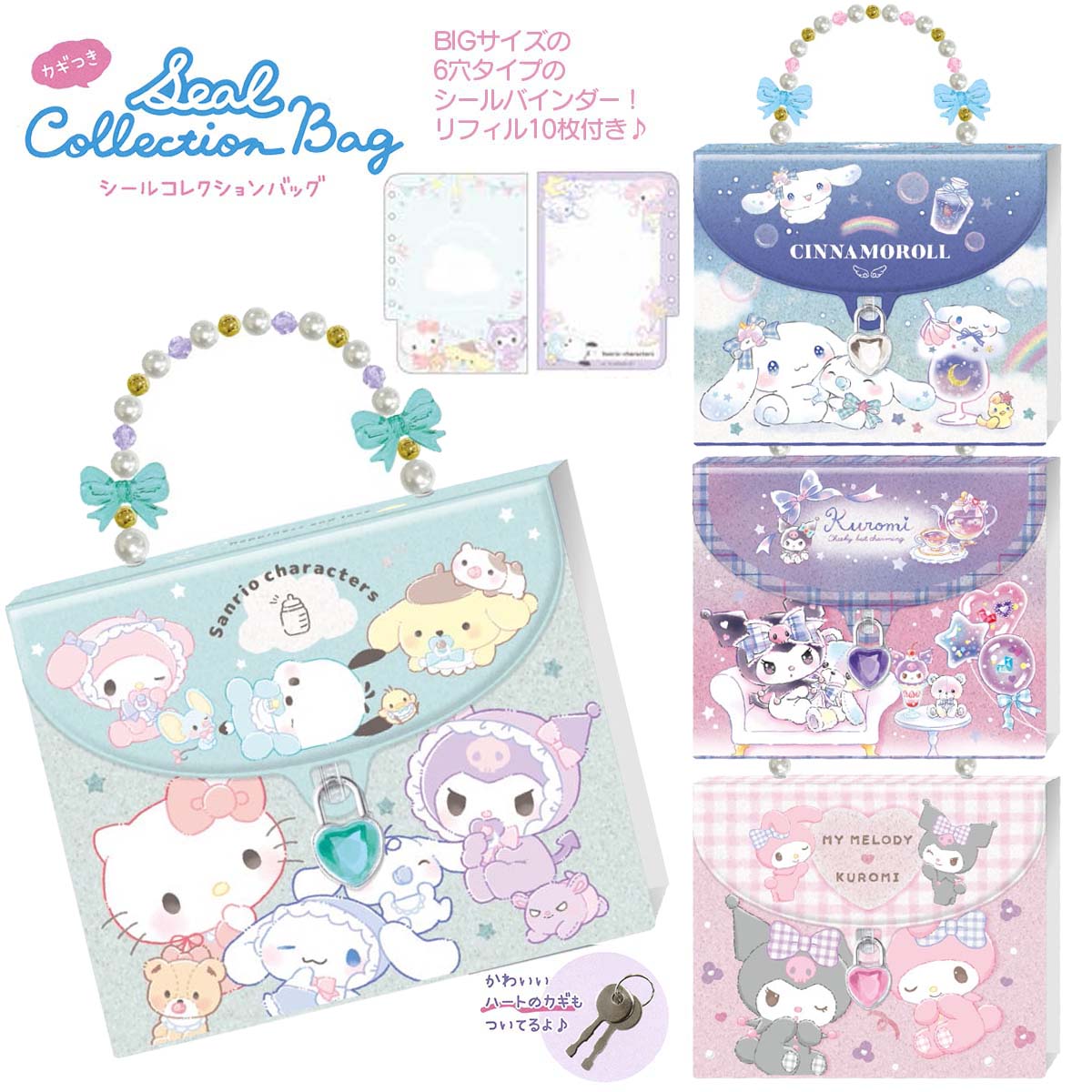 【シールバインダー】サンリオキャラクターズ カギつきシールコレクションバッグ はがせるシール台紙 10枚入り[ バッグ型 シール帳 シール交換]