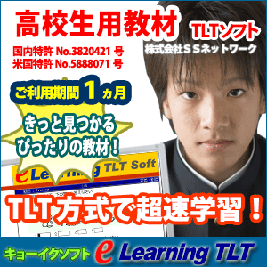 キョーイクソフト eラーニングTLT高校生 利用可能教材 ご契約期間中、下記教材を自由にご利用いただけます。 | | ・Step-up 高校英文法 |  | キョーイクソフト eラーニングTLT 高校生 動作環境 | | OS | 日本語版Windows®XP、Vista、7、8が動作するPC/AT互換(DOS/V)機