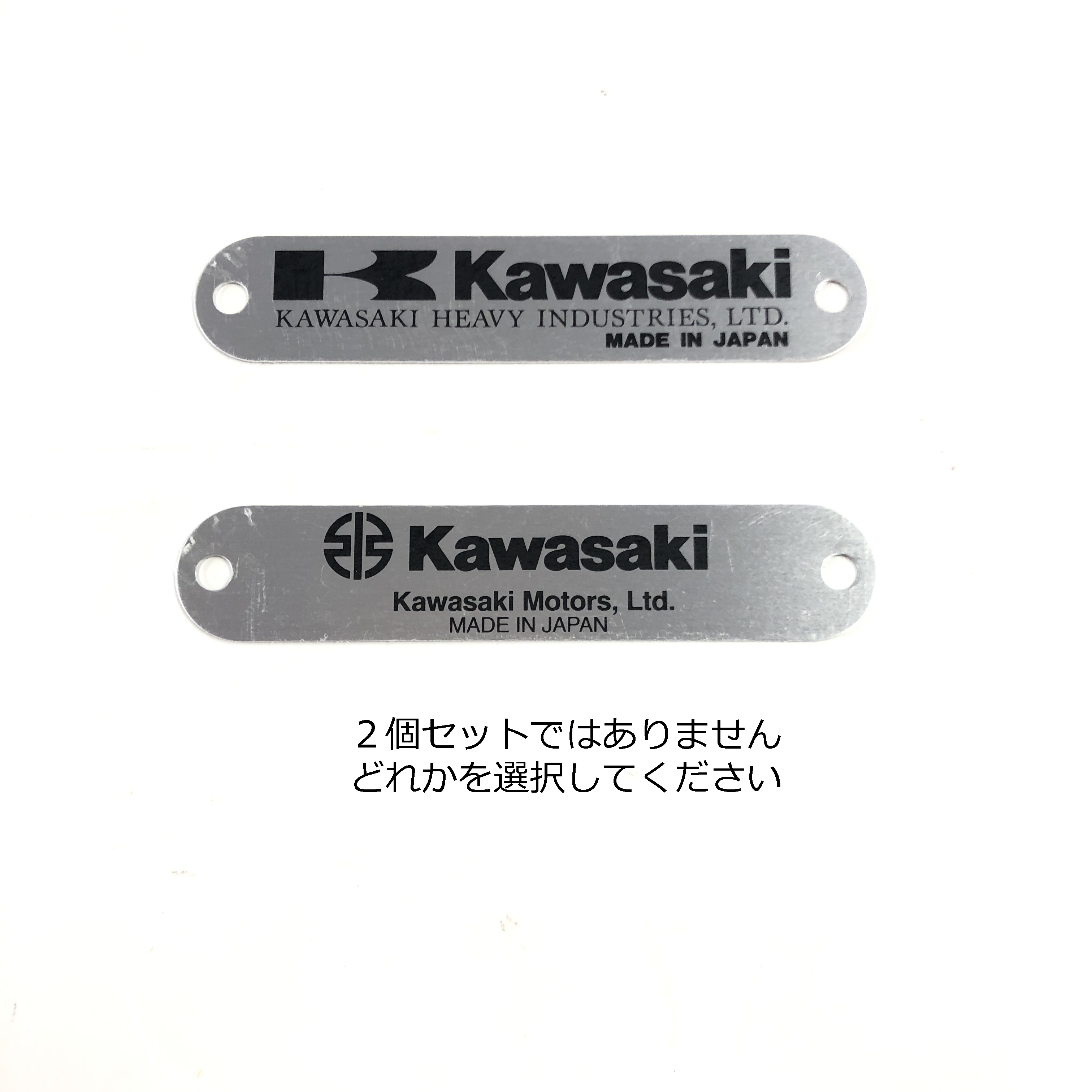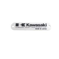 カワサキ車のフレームにリベット留めされているカワサキ純正のブランドラベルです。