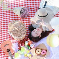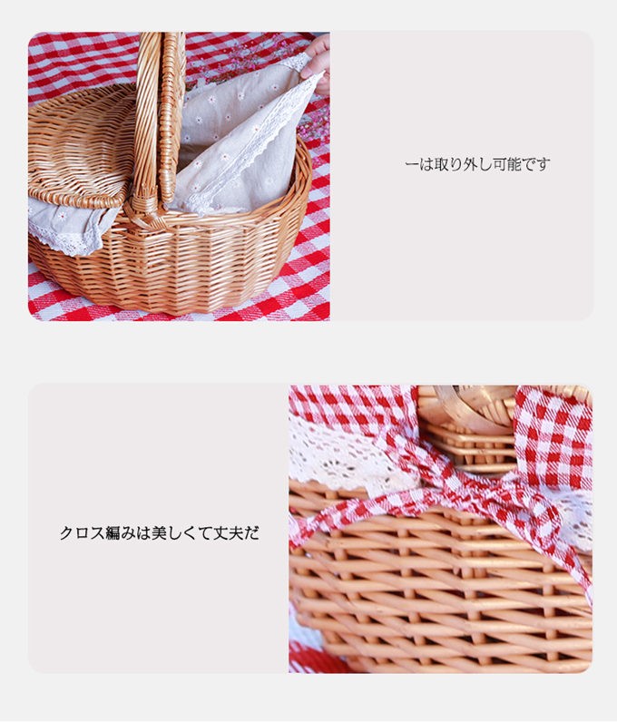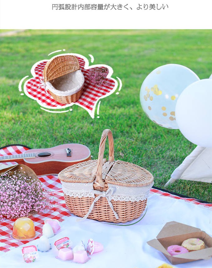 ピクニックバスケット かごバッグ レディース ピクニック 手提げ 蓋付き 野菜 果物 収納 草編みバッグ 透かし編み 森ガール 可愛い 軽量 新作 送料無料