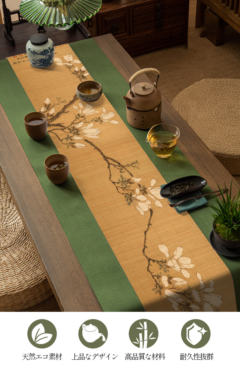 テーブルランナー 竹 テーブルセンター 中華風 おしゃれ 長方形 和風 茶道エレガント 柄 シンプル カバー 汚れ防止 デスクマット 食卓 茶卓 敷物