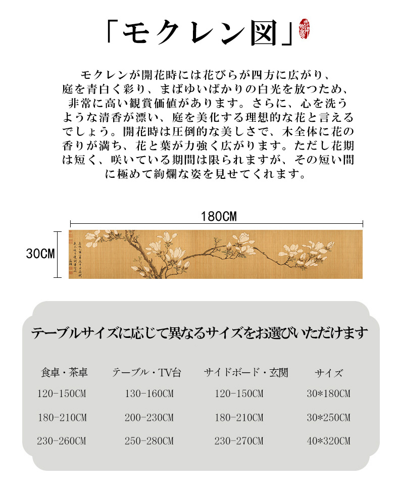 ・テーブルの中央に敷いて、食卓のアクセントとして使用する
