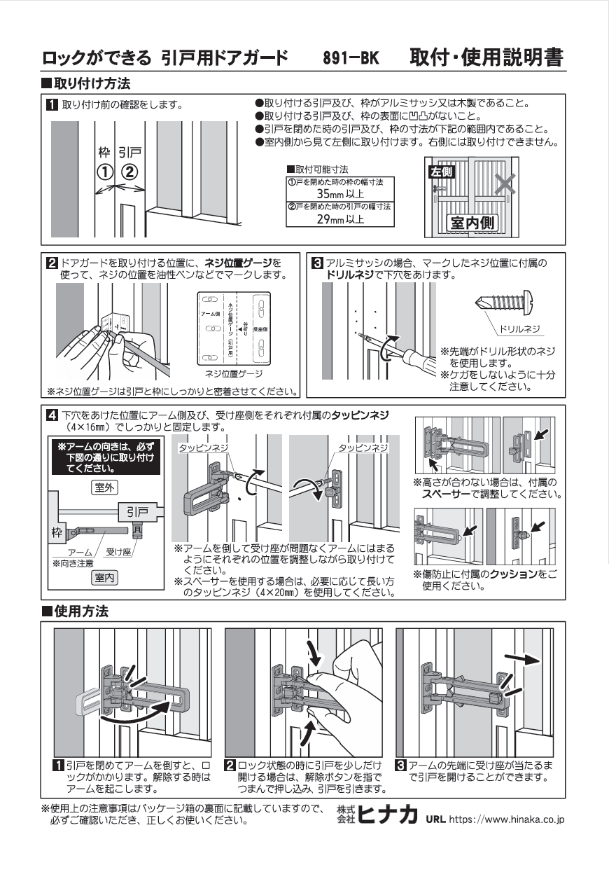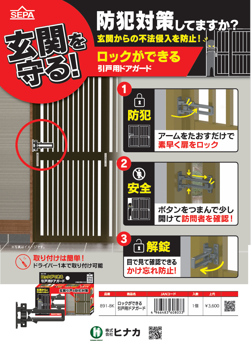 引戸用のドアガード 玄関引戸の防犯対策 891-BK
