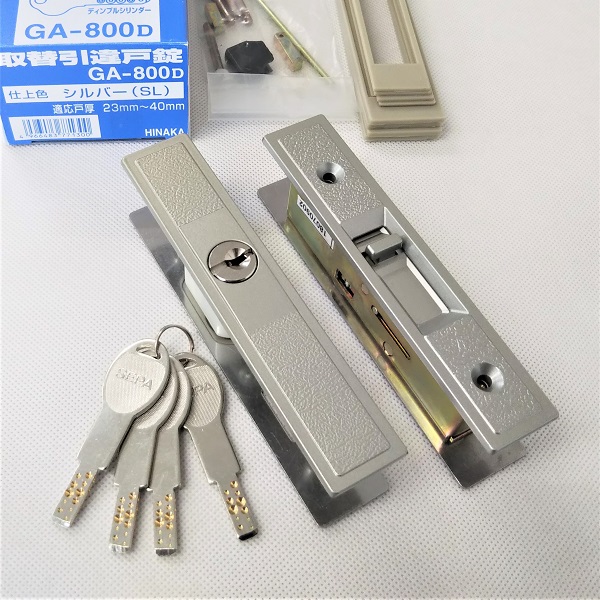 引戸用 玄関 取替錠 GA-800D ディンプルキー4本付き 引き戸玄関錠取り替え 引戸錠 シルバー
