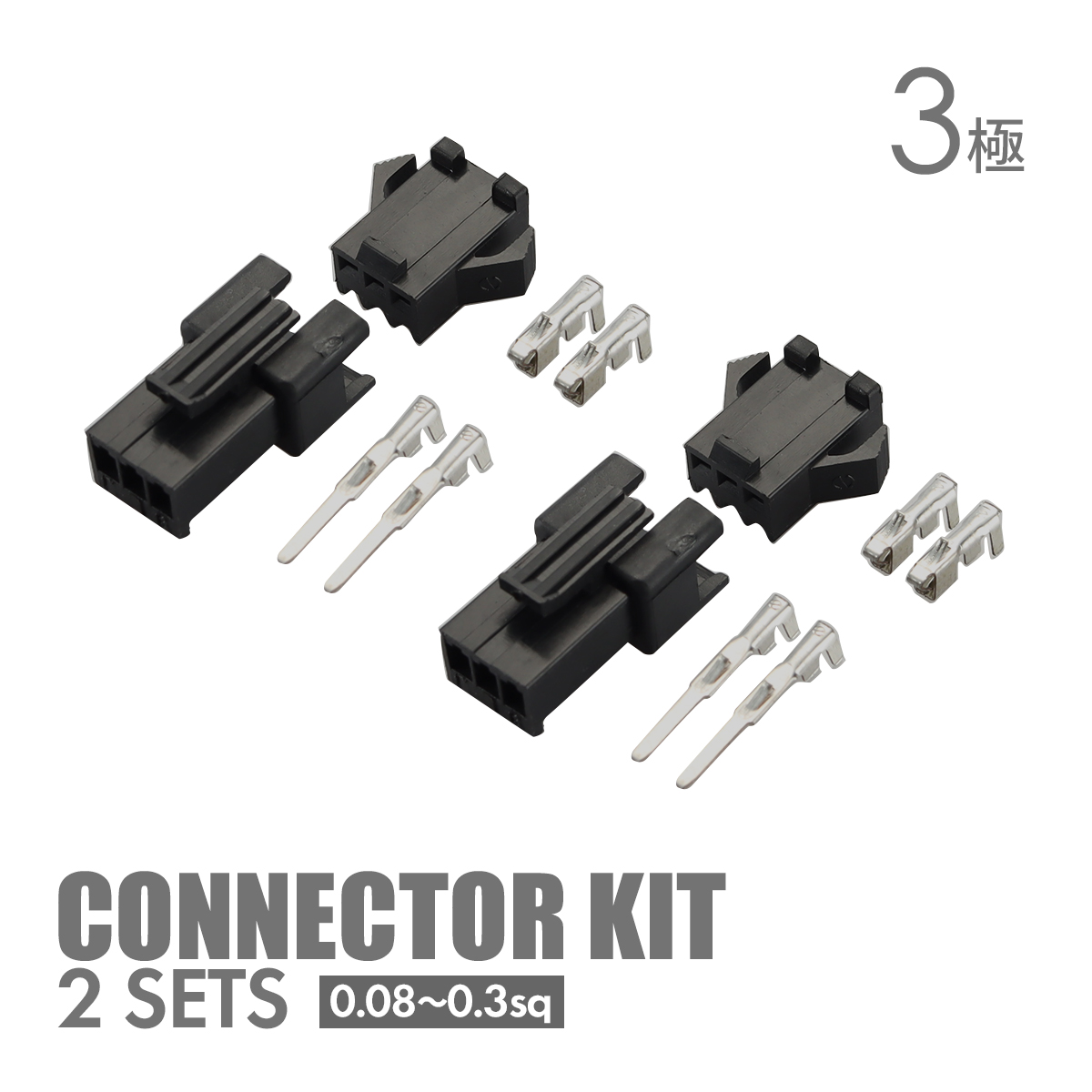 3極 カプラー 3ピン 電気配線 コネクター 端子 (オス/メス) 2セット 車 バイク オートバイ トラック 電装品 汎用 IZ036