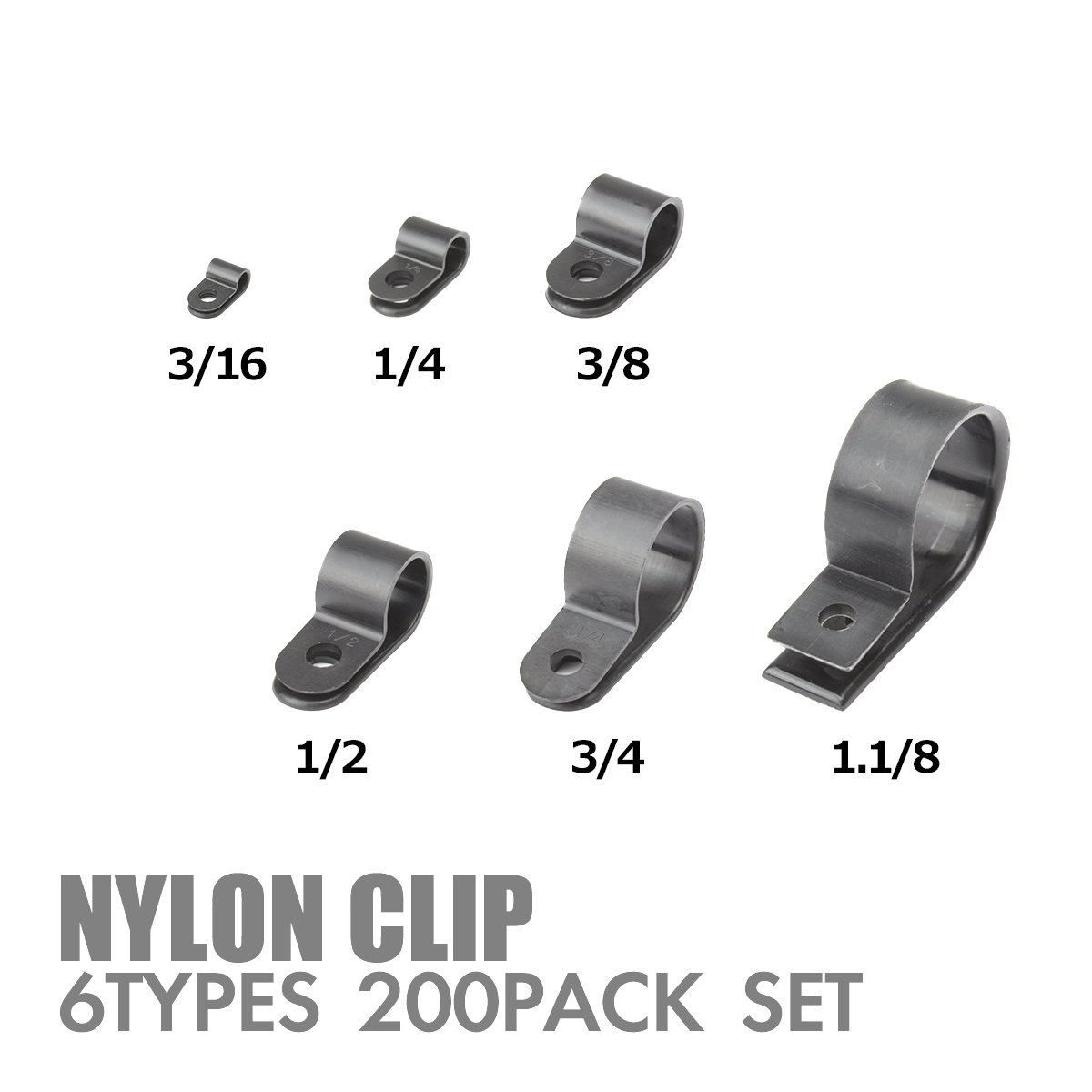 ナイロン ケーブルクリップ 6種セット 合計200個 ケーブルクランプ ブラック ケース入り IZ392