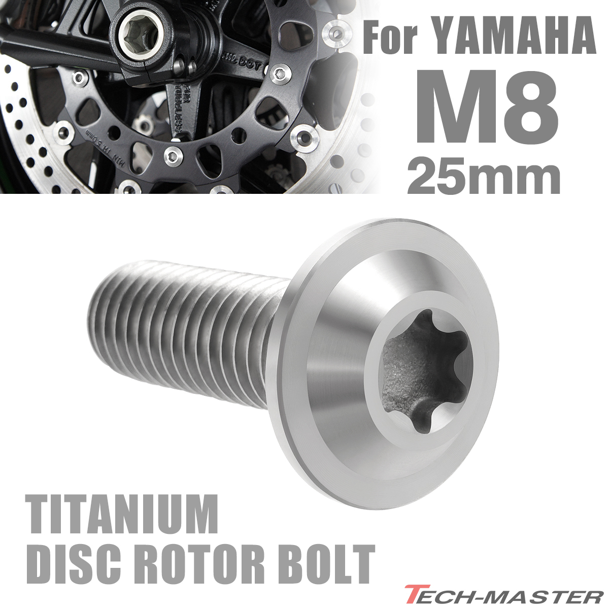 64チタン ブレーキディスク ローター ボルト M8×25mm P1.25 ヤマハ車用 YAMAHA シルバーカラー 素地 JA070