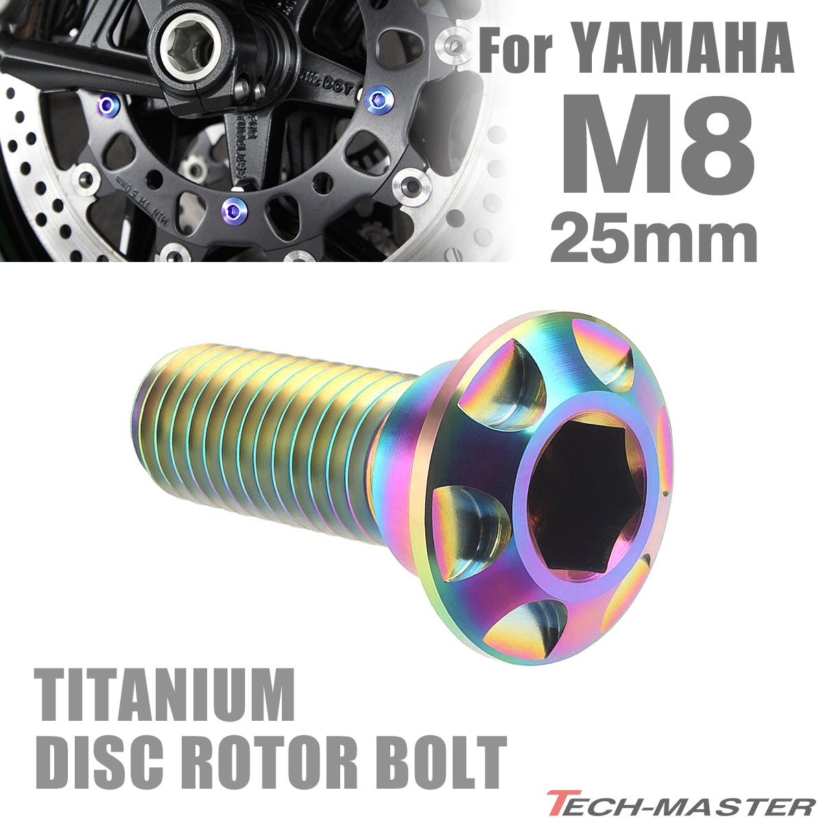 64チタン ブレーキディスク ローター ボルト M8×25mm P1.25 YAMAHA 焼きチタンカラー 虹色 JA076