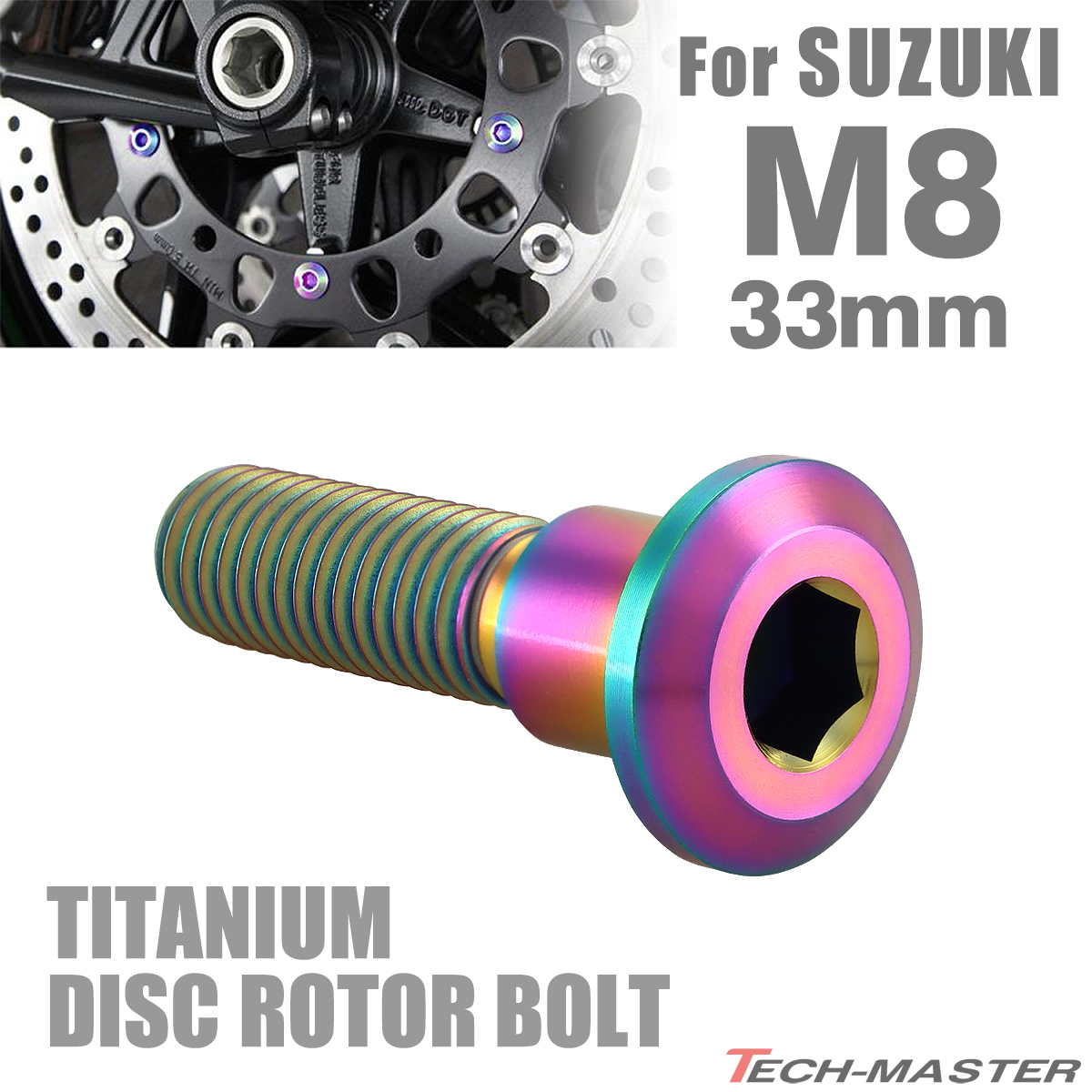 64チタン ブレーキディスク ローター ボルト M8×33mm P1.25 スズキ車用 SUZUKI チタンカラー レインボー JA2037