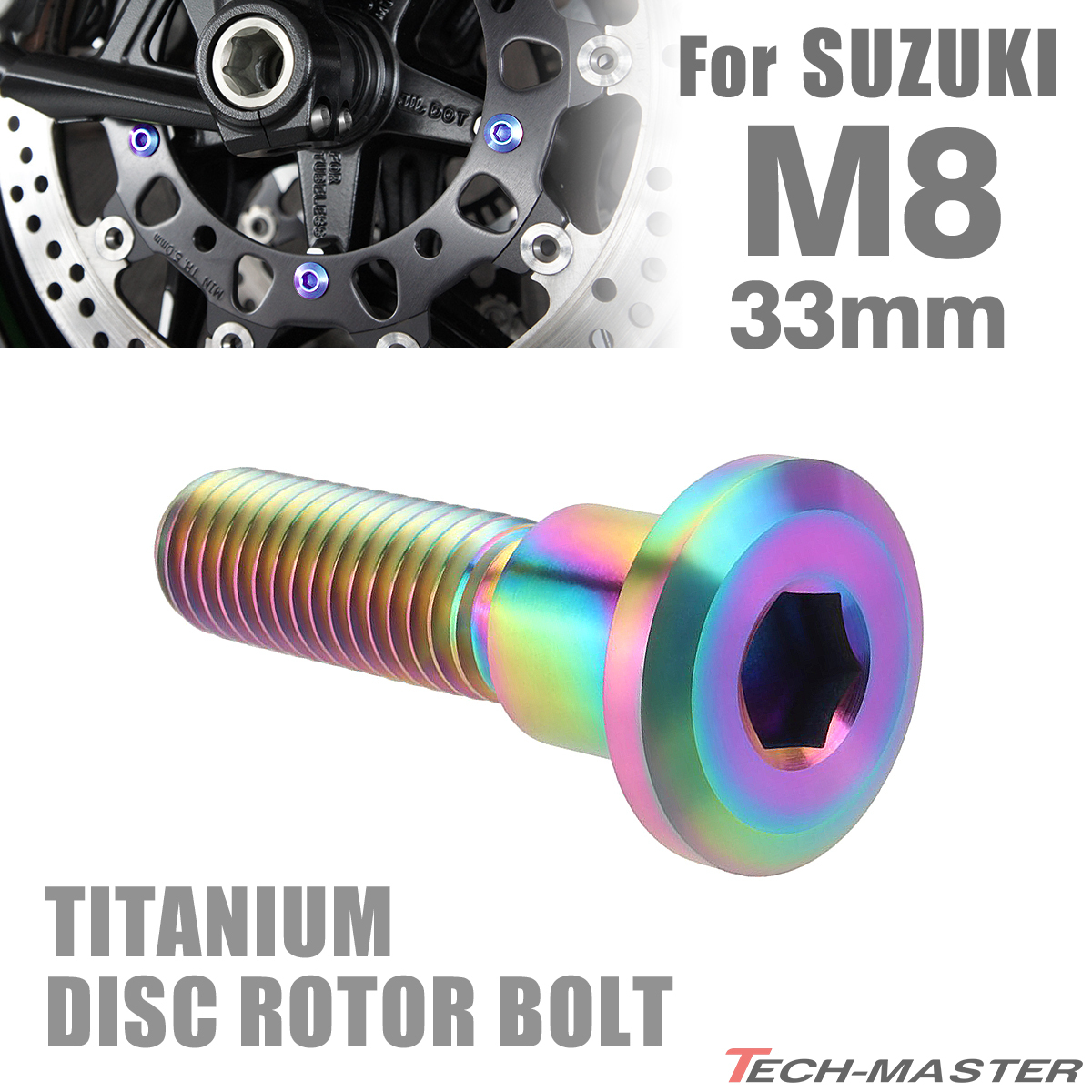 64チタン ブレーキディスク ローター ボルト M8×33mm P1.25 スズキ車用 SUZUKI 焼きチタンカラー 虹色 JA204