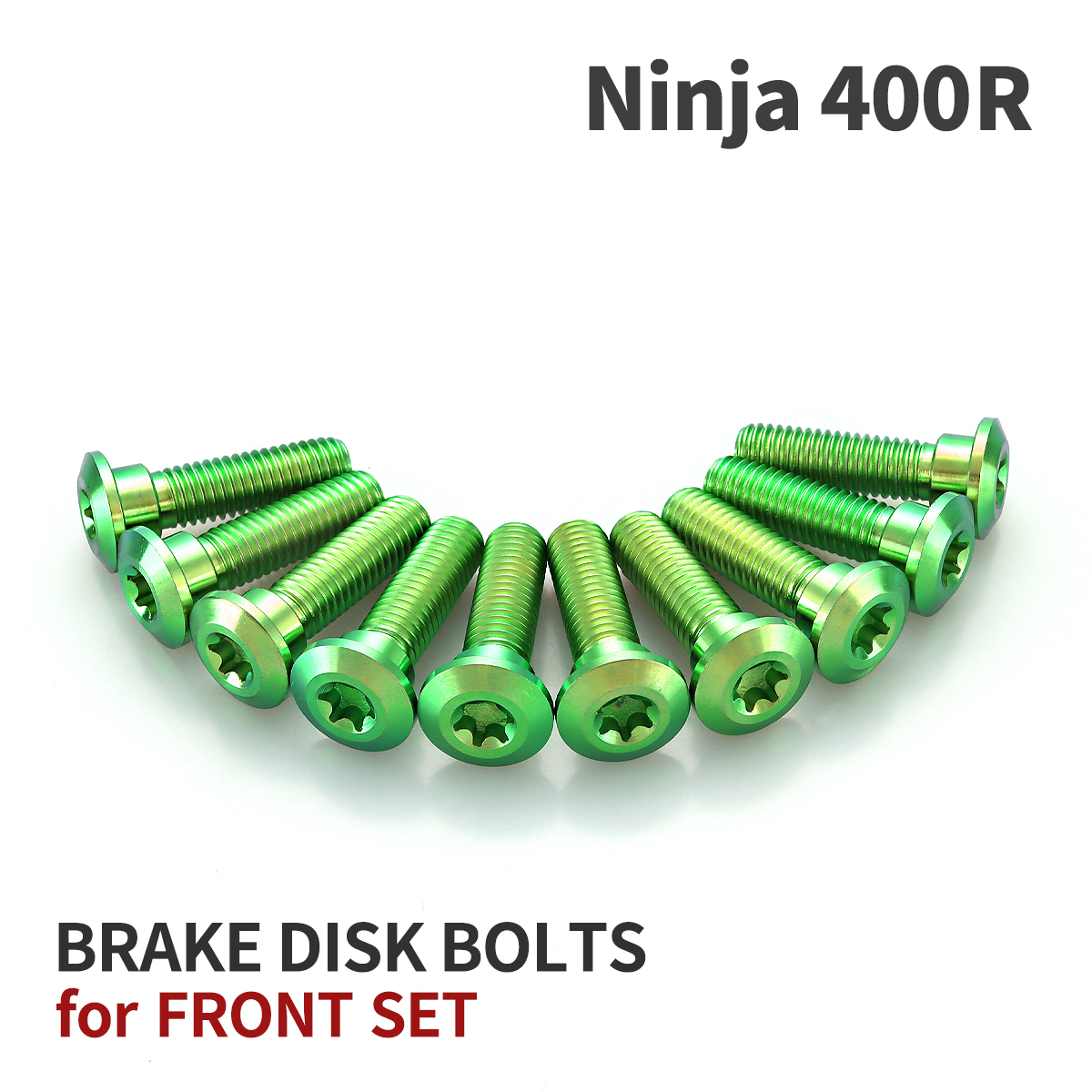 ニンジャ400R Ninja 64チタン ブレーキディスクローターボルト フロント用 10本セット カワサキ車用 グリーン JA22002