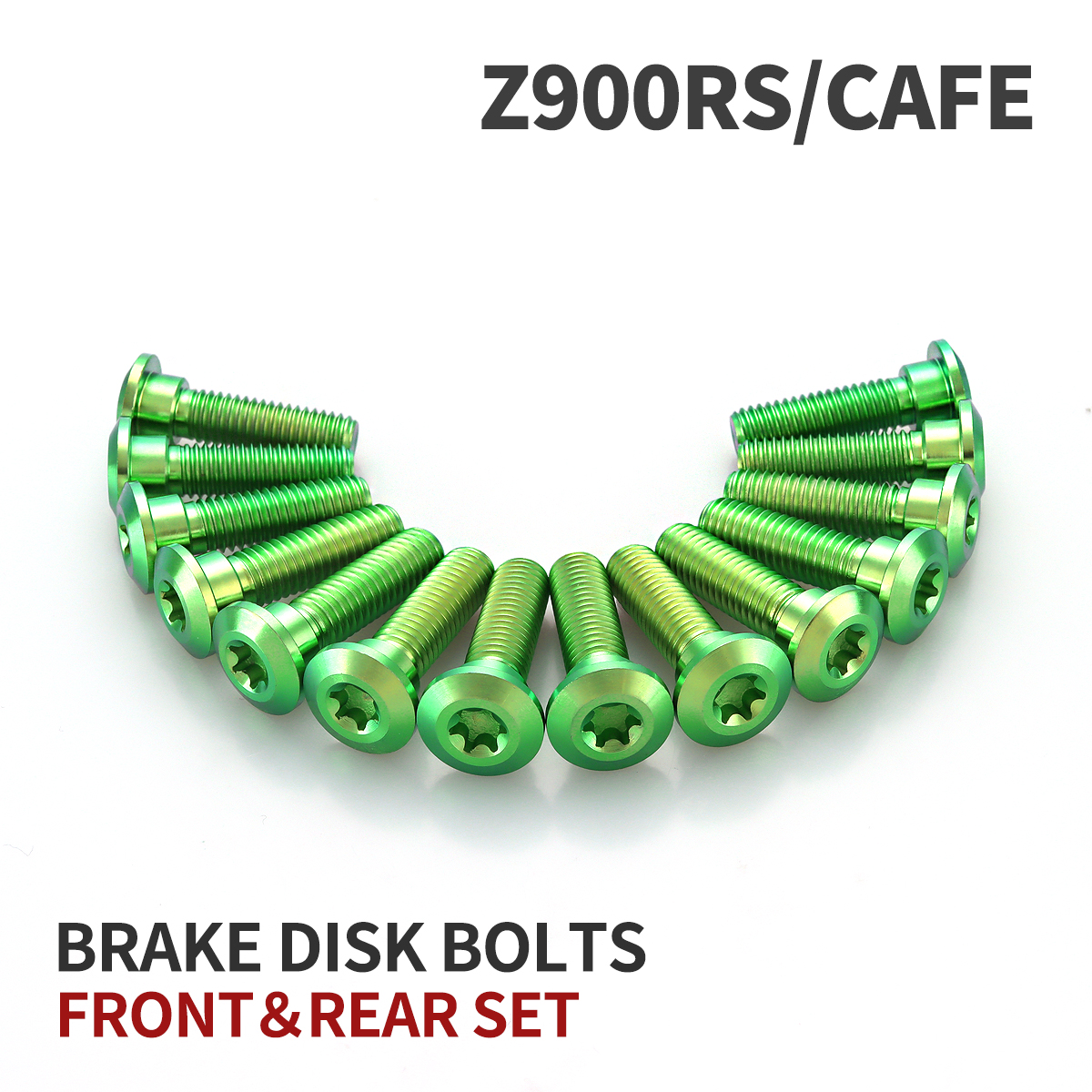 Z900RS/CAFE 64チタン ブレーキディスクローターボルト フロント リア 14本セット カワサキ車用 グリーン JA22102