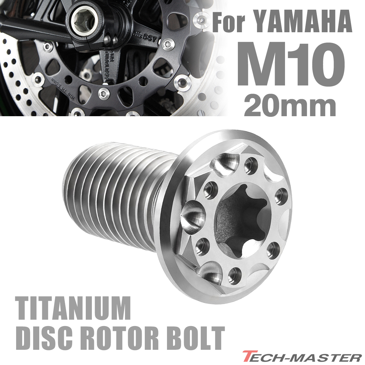 64チタン ブレーキディスク ローター ボルト M10×20mm P1.25 ヤマハ車用 YAMAHA シルバーカラー JA223
