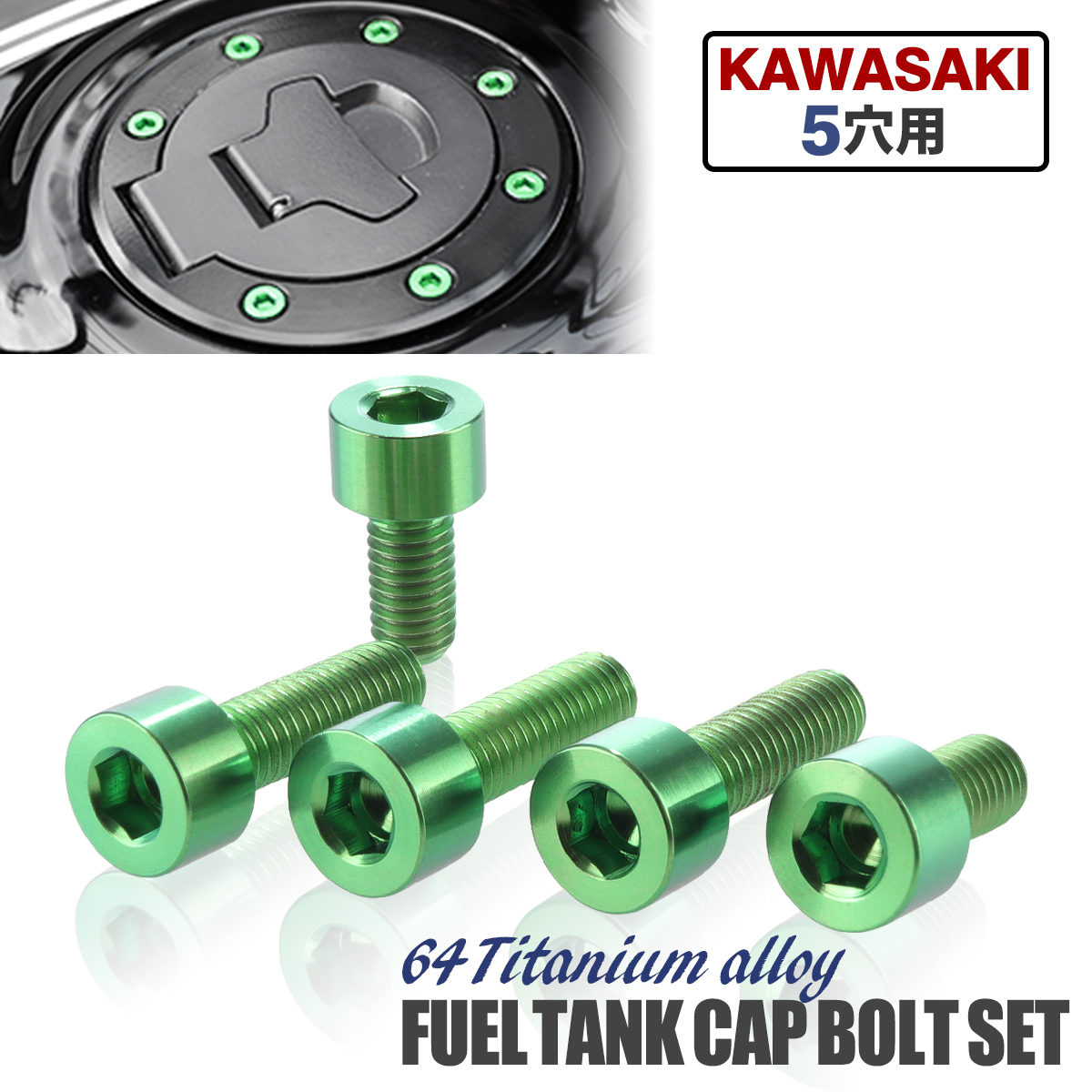 タンクキャップ チタンボルト バイク カワサキ 5穴用 グリーン 5本セット JA253