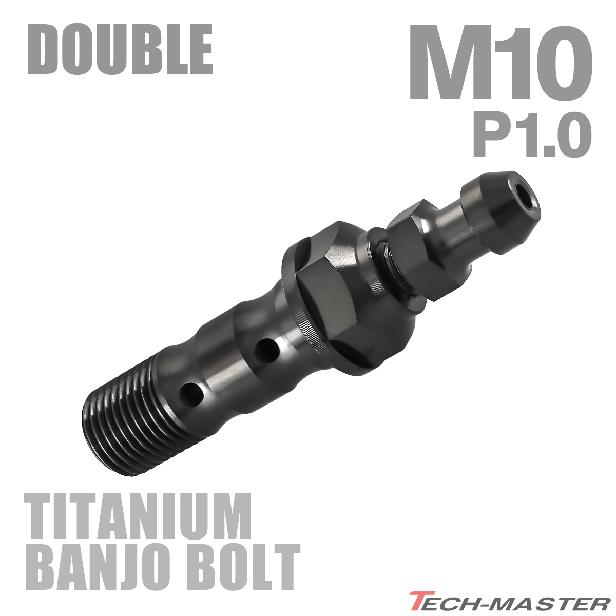 バンジョーボルト 64チタン M10 P1.0 エアブリード ニップル付 ダブル ブラック JA2598