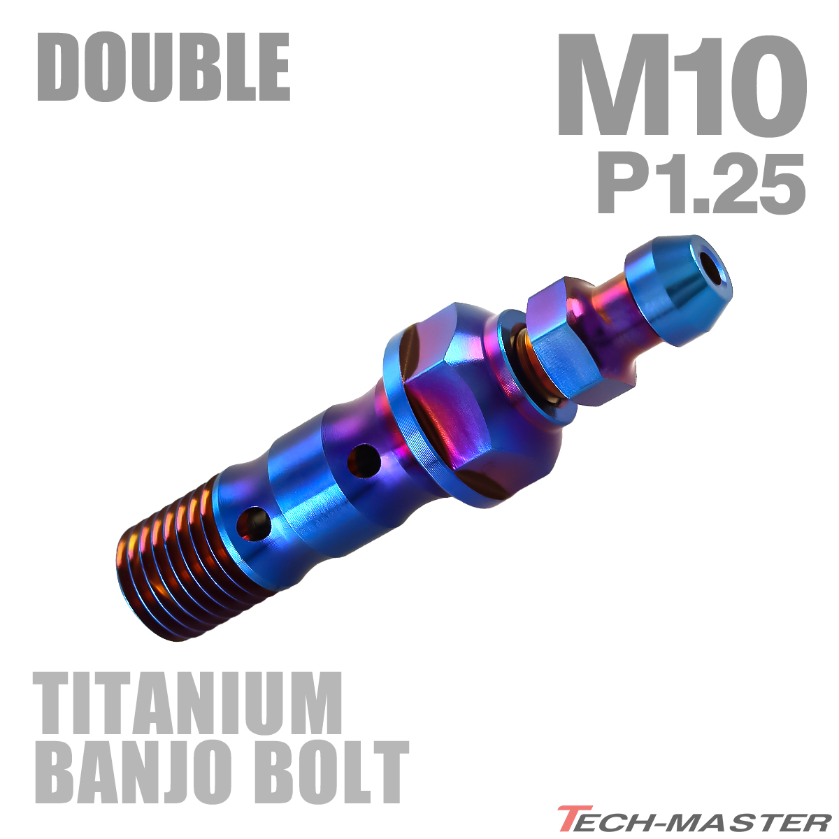 バンジョーボルト 64チタン M10 P1.25 エアブリード ニップル付 ダブル 焼きチタンカラー JA2602