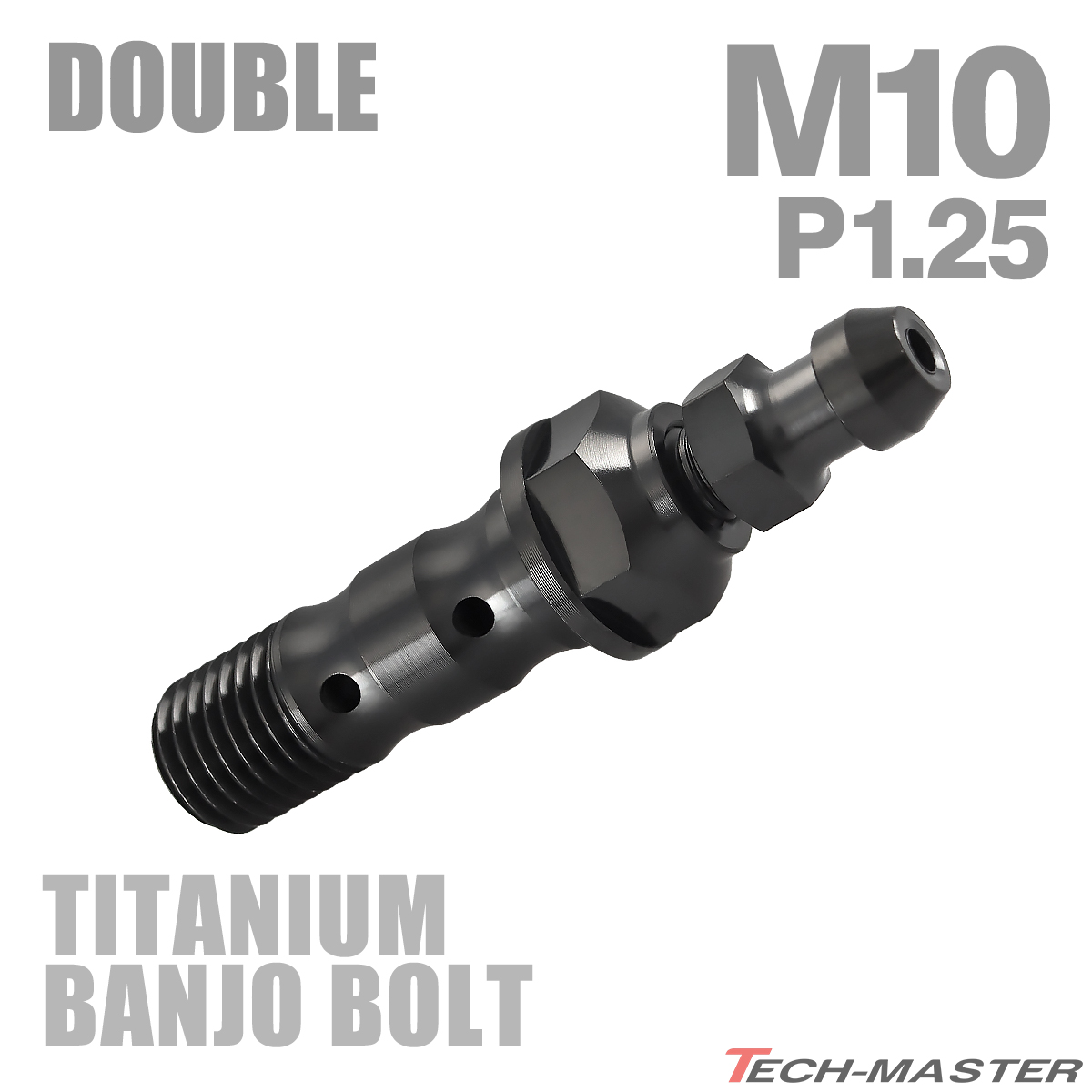 バンジョーボルト 64チタン M10 P1.25 エアブリード ニップル付 ダブル ブラック JA2603