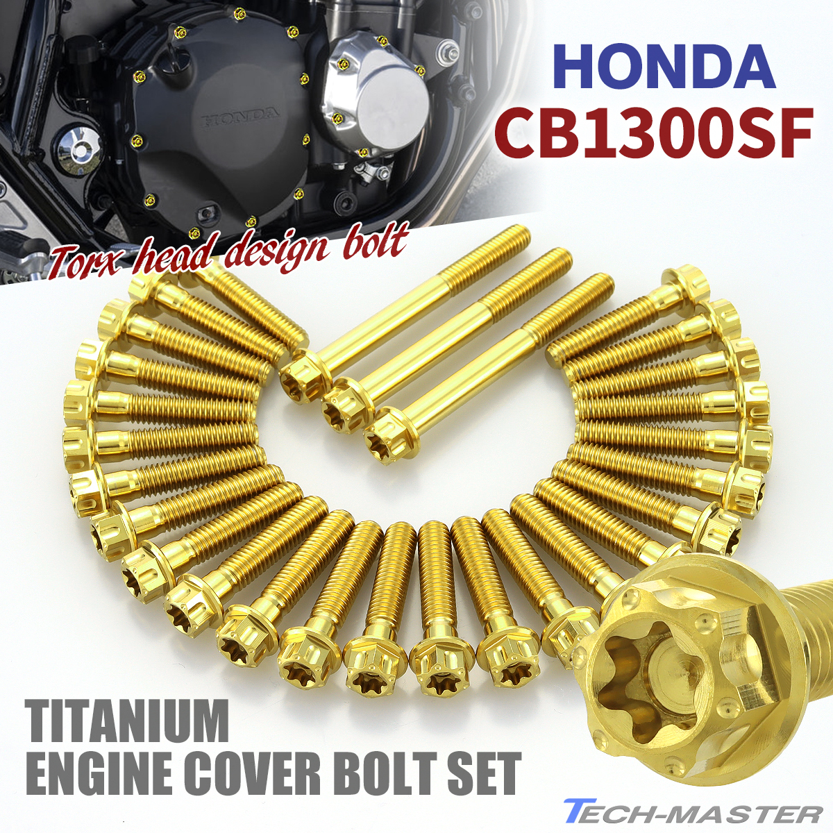 CB1300SF エンジンカバー クランクケース ボルト 28本セット チタン製 ホンダ車用 ゴールドカラー JA6283