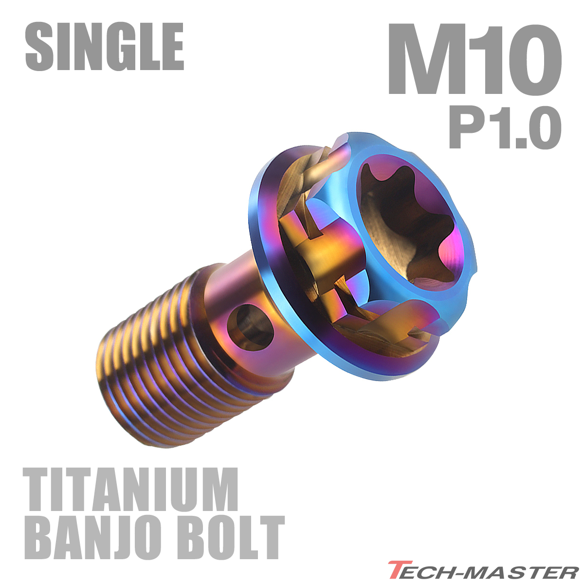 バンジョーボルト 64チタン M10 P1.0 シングル ブレーキライン 焼きチタンカラー JA770