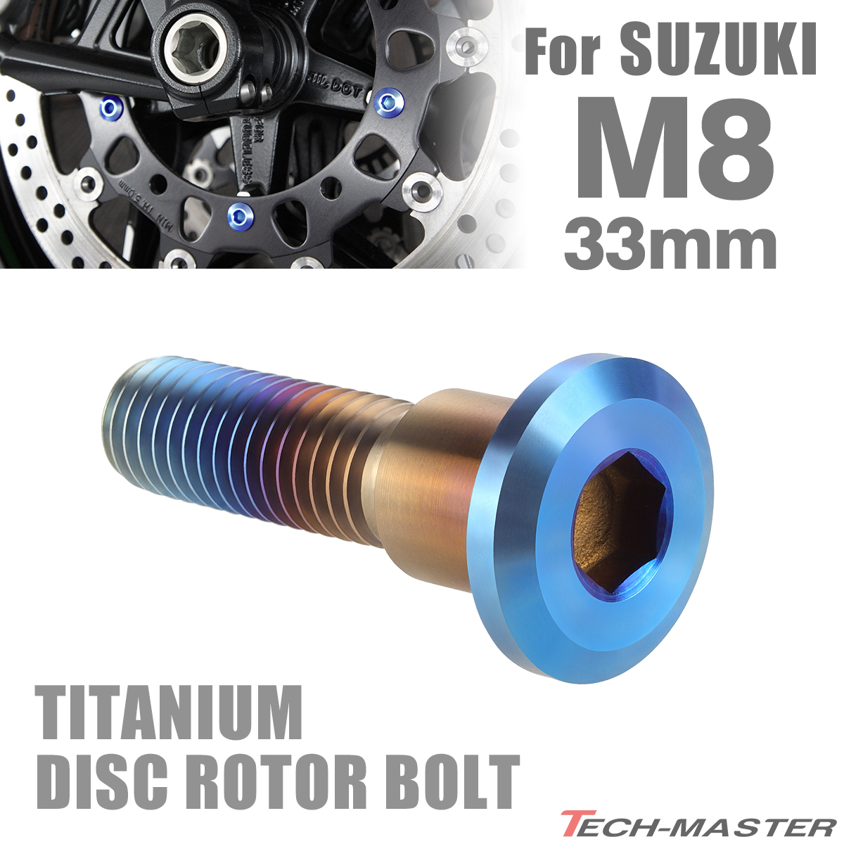 64チタン ブレーキディスク ローター ボルト M8×33mm P1.25 スズキ車用 SUZUKI 焼きチタンカラー JA814