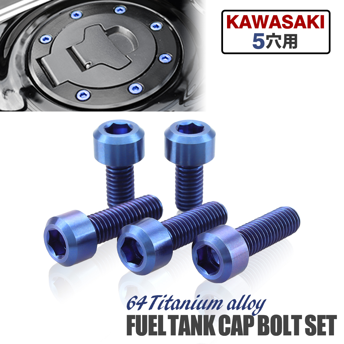 タンクキャップ チタンボルト バイク カワサキ 5穴用 ブルー 5本セット JA983