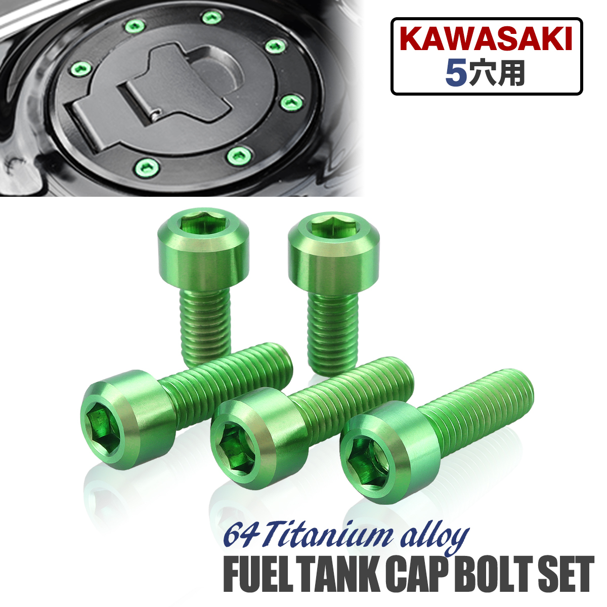 タンクキャップ チタンボルト バイク カワサキ 5穴用 グリーン 5本セット JA984