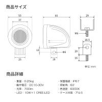 バイク フォグランプ LED コンパクト ワークライト 作業灯 10W 700ルーメン 6000K CREE社製 小型 補助灯 IP67 防水 PZ131
