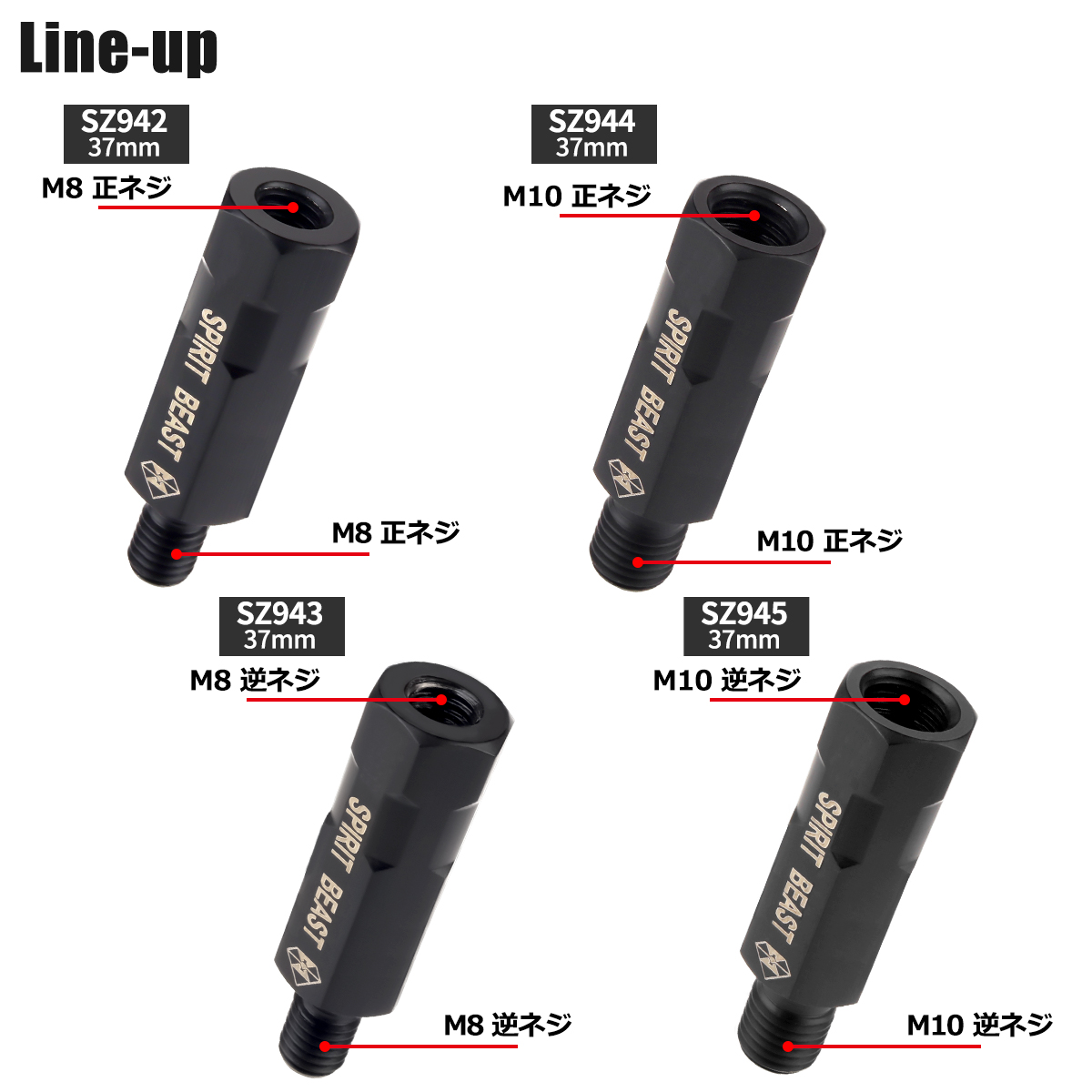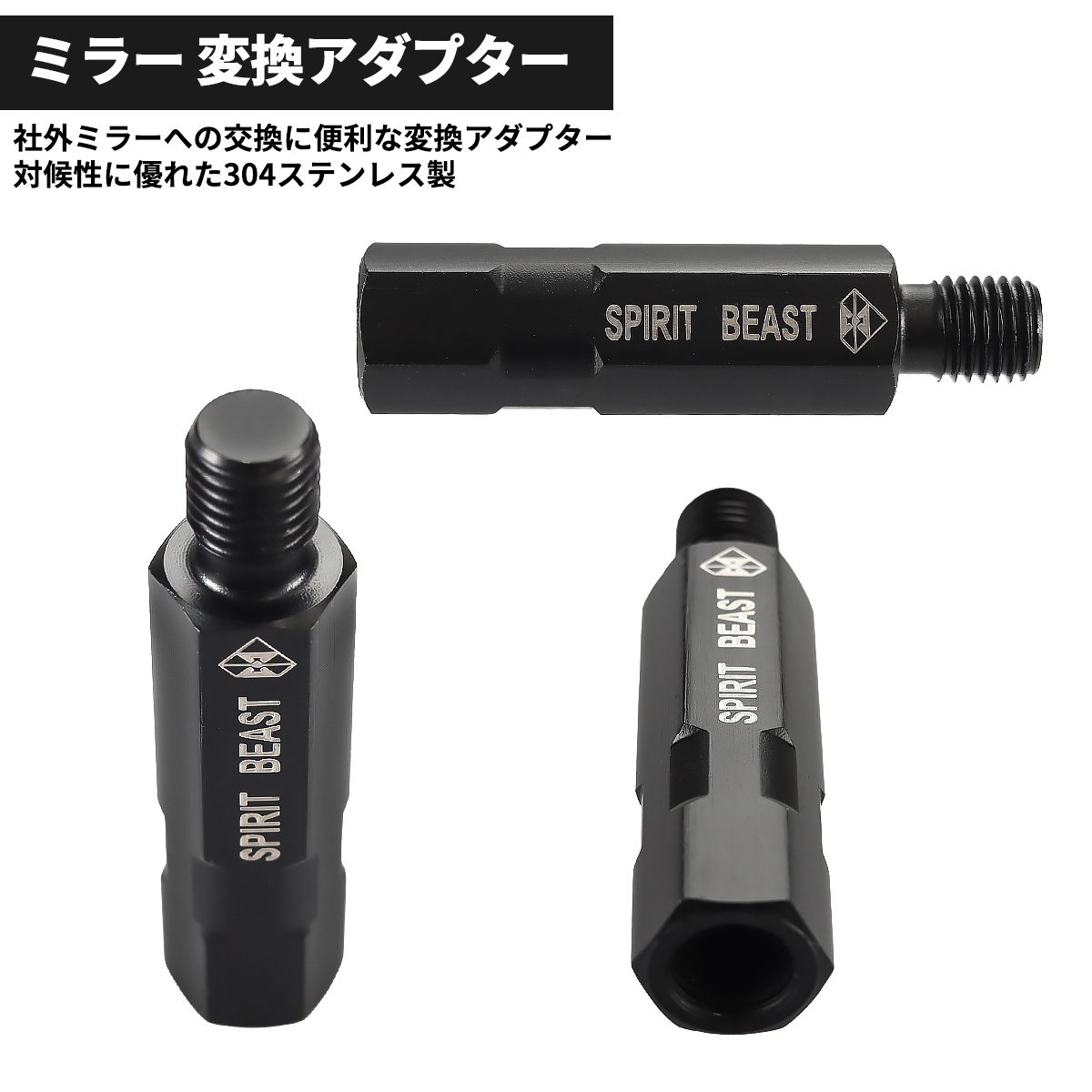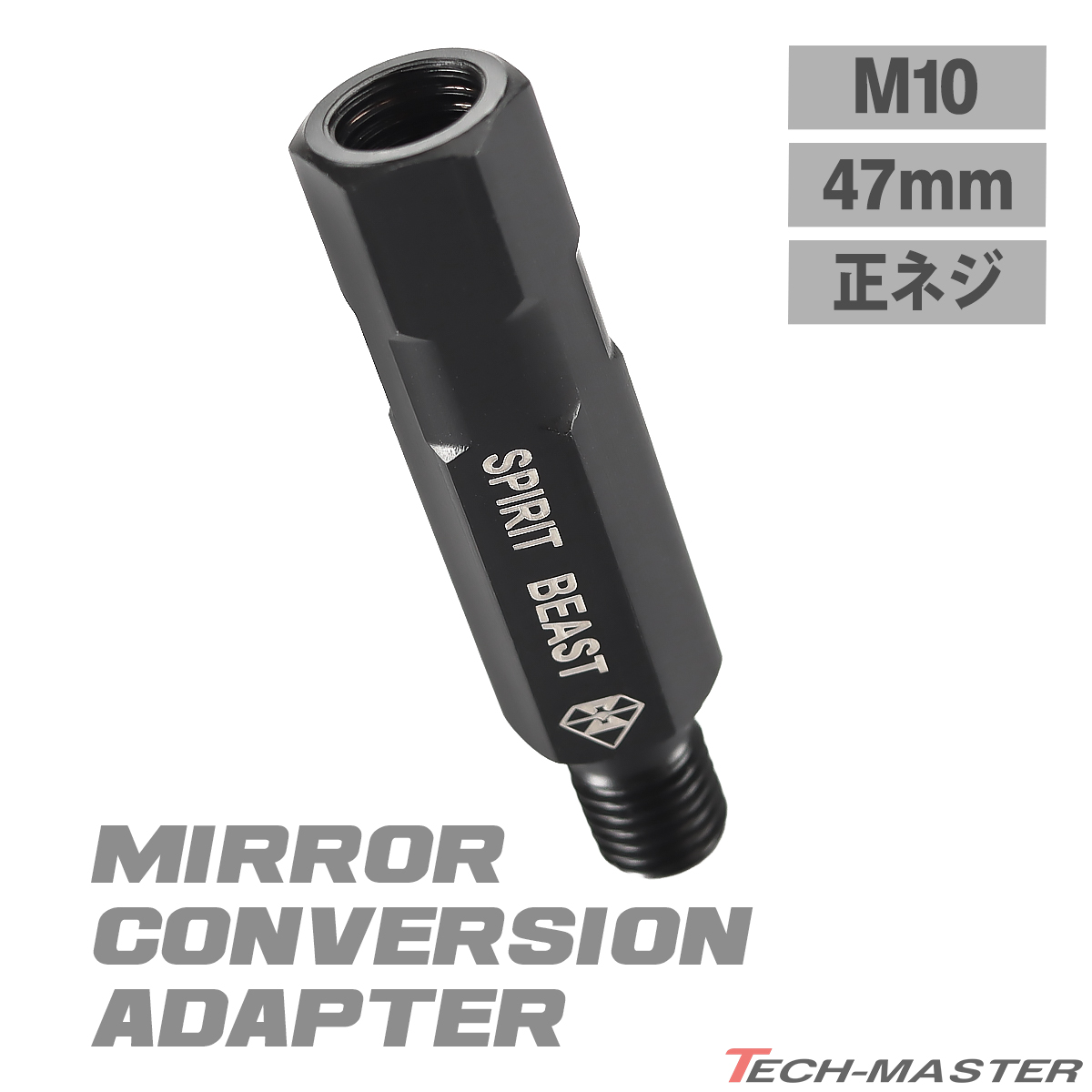 バイク ミラー 変換アダプター 47mm延長 M10 P1.25 正ネジ 変換プラグ ステンレス ブラック S-996