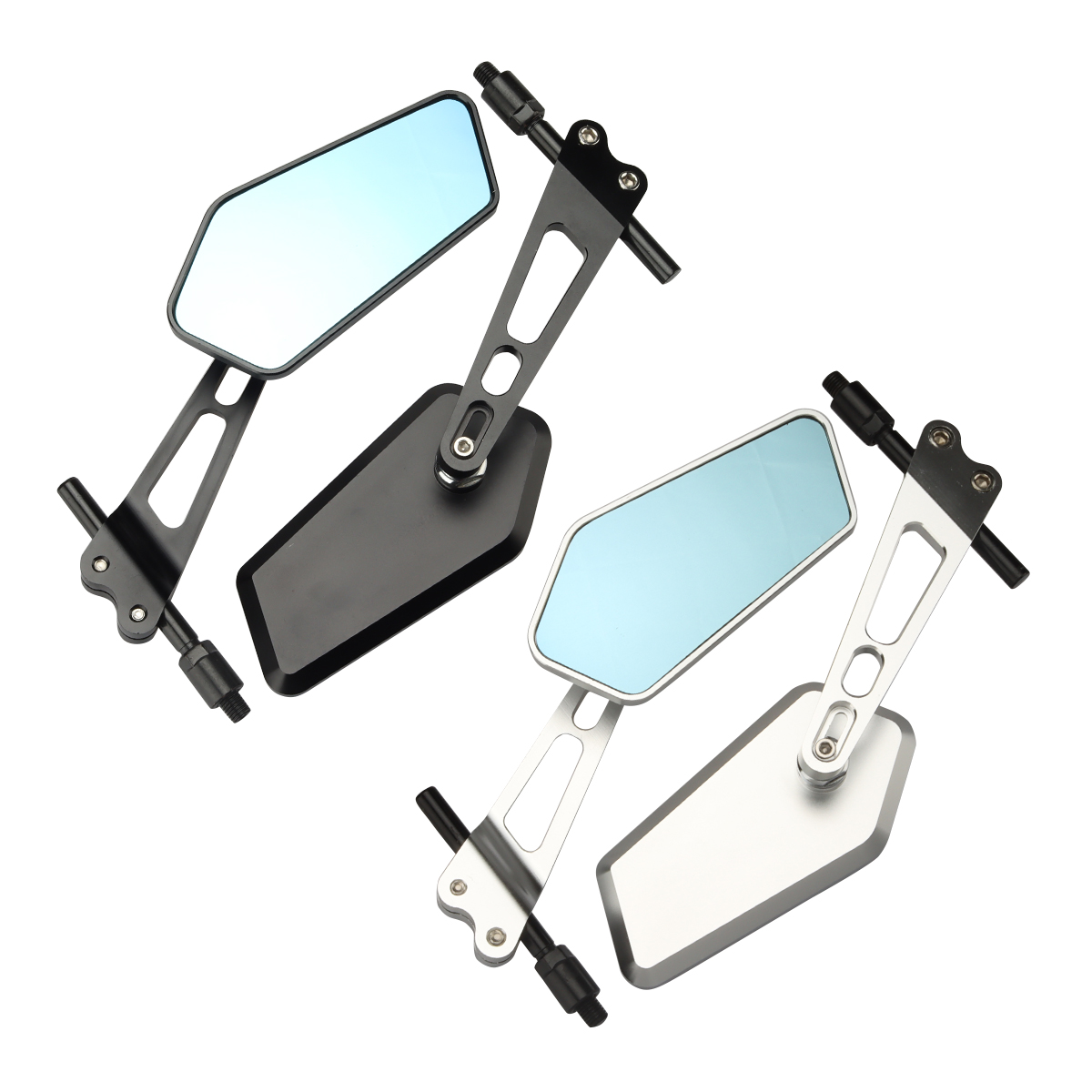 バイク ミラー 左右セット 8mm 10mm 正ネジ 逆ネジ アダプター付き ブルーレンズ 上下スライド 折り畳み 調整可能 汎用 SZ272CHOISE