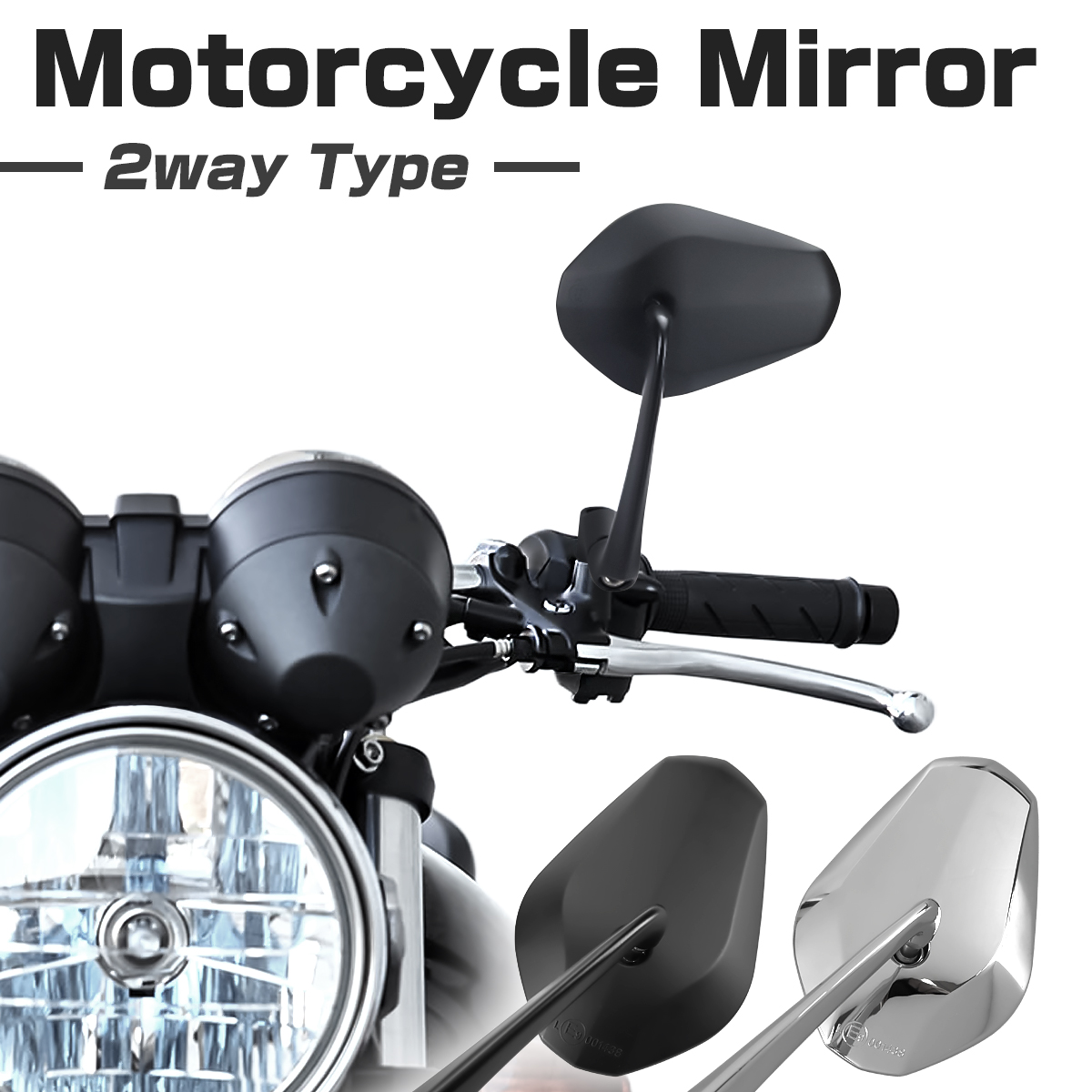 バイク ミラー バレンミラー 2WAY バーエンドミラー 左右セット 汎用 8mm 10mm 正ネジ 逆ネジ クロームメッキ マットブラック SZ699