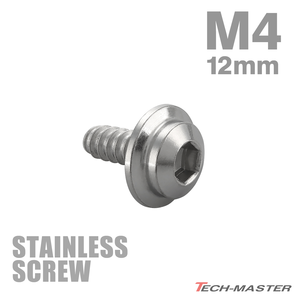 ステンレスネジ M4×12mm タッピングビス 六角穴 ステップヘッド シルバーカラー 1個 TC0031