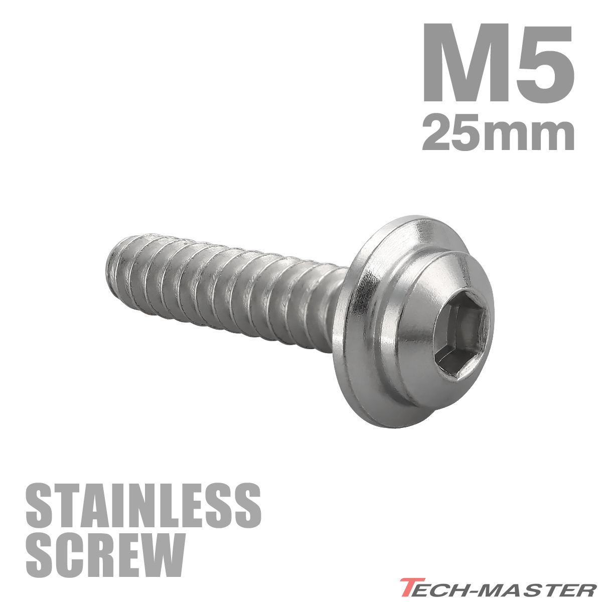 ステンレスネジ M5×25mm タッピングビス 六角穴 ステップヘッド シルバーカラー 1個 TC0035