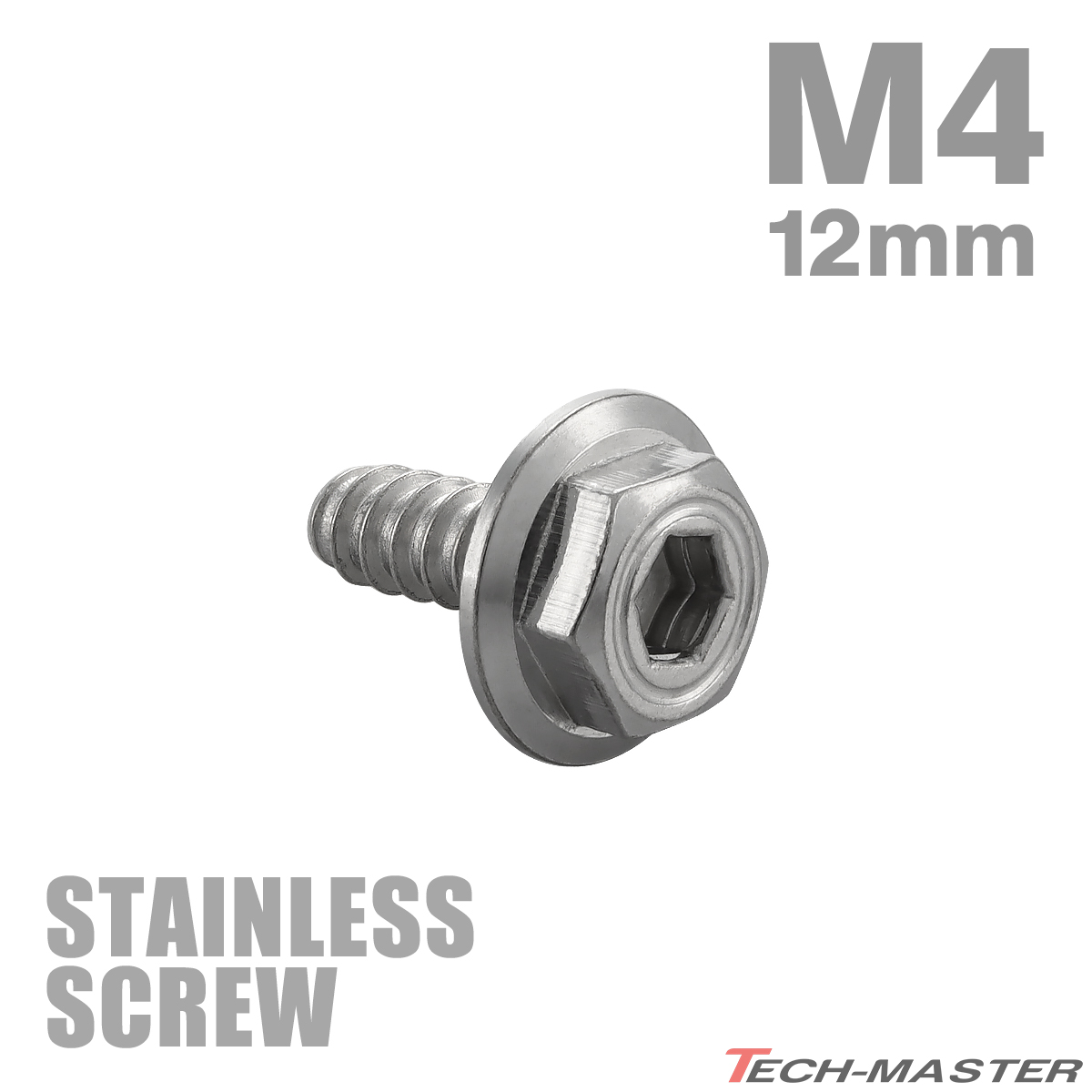 ステンレスネジ M4×12mm タッピングビス 六角穴 シンヘキサゴンヘッド シルバーカラー 1個 TC0046